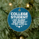 College Student No Sleep No Money No Life Christmas Tree Ornament. Hang this college student ornament on your Christmas tree during the holidays to remind you of all your struggles and your journey through college. These College Student No Sleep No Money No Life Christmas tree ornaments also make wonderful gifts for college students.