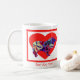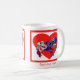 Roter, blauer und gelber Neonschmetterling mit roter, blauer und gelber Silhouette abstrakte Muster auf rotem Herzen. Adorable Hundeschengeschenke können mit allem personalisiert werden, was anstelle von "Best Hund Mom" auf beiden Seiten der Tasse ist.