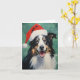 Farbenfrohe und fröhliche Weihnachtsgestaltung mit einer Collie mit einer Weihnachtsmannmütze
