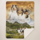 In dieser gemütlichen und warmen Sherpa-Fleece-Decke, lebhaft gedruckt mit einem schönen Composite-Kunstwerk, das ein Portrait & Szene-Combo aus drei wunderschönen Rough-Collies-Schafen im schottischen Hochland darstellt, ergänzt durch das (austauschbare) Zitat "Ein Haus ist keine Zuhause ohne Collie" und optionale Initialen. — HINWEIS: Dieses Design ist nur für vertikale Decken gemacht, ändern Sie nicht die horizontale Ausrichtung. Auf Wunsch können die Kunstwerke mit Ihren eigenen Begleitern erstellt und von Ihren Fotos aus sorgfältig umgesetzt werden. Lesen Sie unsere Produktkategorie "Kissen und Decken" oder die dazugehörige Kollektion für passende Kissen und andere Deckentypen.— KONTAKT: Für Hilfe und individuelle Anpassungsanfragen kontaktieren Sie uns auf Zazzle, FB oder per E-Mail oder besuchen Sie unsere zugehörige Produktseite unter https://petsdreamlands.com/pid-bls-slst001brca-v. Genießen Sie!
