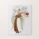 Vintage Ellen Clapsaddle hat ein koloniales Mädchen, das einen Kuchen schneidet, bevor es im Ofen gebacken wird. Behalt deinen Enkelkindern, die jedes Jahr mit dem traditionellen Puzzle beschäftigt sind, um ihnen vor dem großen Abendessen zu helfen, ihren Hunger zu stillen!