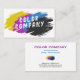 A business card with Colorful Brush Splash in four colors: yellow, pink, blue and black for printing services activities, but also print worker, graphic design or visual identity, personal brand, etc.