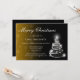Christmas invitation in landscape orientation with color faded to blend in with solid black background. White sparkle Christmas tree decoration added.