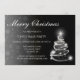 Christmas invitation in landscape orientation with color faded to blend in with solid black background. White sparkle Christmas tree decoration added.