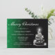 Christmas invitation in landscape orientation with color faded to blend in with solid black background. White sparkle Christmas tree decoration added.