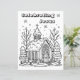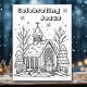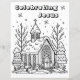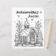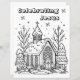 Farbseite mit einem Weihnachtsthema. Hübsche Kirche mit Buntglas und schneebedecktem Hintergrund. Im Text steht: "Feiert Jesus." Niedlich für Kinder, Jugendliche oder Erwachsene.