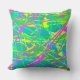 Dies ist ein mehrschichtiges, kritzeliges Design in hellen Farben und sanften Airbrush-Linien, die in einem traumhaften Blau-Grün basieren, für Menschen, die in Farbe träumen! Trendy, kritzeln Sie in den Farben Blau, Gelb, Rosa und Grün, belebt, spontan, künstlerisch, für die Hauswärmung, Weihnachten, Brautparty oder Hochzeit, Geburtstag oder Dekoration, wann immer Sie möchten. Das ist in 20x20" (abgebildet), 16x16" oder lumbart, Ihre Wahl von Stoff inklusive Outdoor und Reißverschluss.