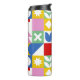 This colorful water bottle features a bold, modern geometric pattern that instantly stands out. Each square on the bottle showcases a different playful shape—circles, petals, lines, and abstract motifs—arranged in a lively mosaic of red, blue, green, yellow, pink, and white. The bright, high‑contrast palette gives it a cheerful, artistic vibe, while the sleek black top adds a clean, contemporary finish. It’s a fun, expressive accessory for staying hydrated in style.
