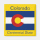 Ein echtes Bild der Fahne des Colorado Set zwischen dem Namen des Staat und dem Spitznamen über einem hellen Flag-farbigen Hintergrund.