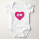 Dieser Baby-Ramper verfügt über ein pulsierendes, heiß rosa Herz mit den fett gerundeten, weißen Kleinbuchstaben co, einer spielerischen Version der Abkürzung für Colorado, den hundertjährigen Staat.