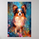 Farbenfrohe Kunstwerke eines Papillon-Hundes.