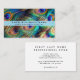 Diese modernen eleganten Beauty-Visitenkarten sind ideal für Floristen, Kosmetiker, Hochzeitsplaner und andere! Farbenfrohe Pfauenbilder rahmen dieses einfache, farbenfrohe klassische Design.