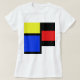 Farbblockdesign auf einem T - Shirt mit roten, gelben, blauen, schwarzen und weißen Tanks.