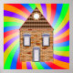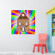 Ein Backsteinhaus umgeben von farbenfrohen Regenbogenfarben. Dieses Design sieht wirklich effektiv aus auf diesem Poster