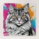 Ausdrückliches Portrait eines Maine Coon, gezeichnet in Aquarelltechnik