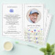 Mit einer blauen Wildblume Wiese, diese Aquarellfarbe ziert ein faltbares Beerdigungsprogramm. Die Vorderseite ist so konzipiert, dass sie beidseitig bedruckt und flach geliefert wird, damit Sie sie falten können. Sie zeigt den Namen des Verstorbenen und Sie können ein Lieblingsfoto in den silbernen Effekt-Rundrahmen einfügen, während das Innere mit der Reihenfolge des Dienstes oder was auch immer Sie möchten bearbeitet werden kann. In einer schwierigen Zeit eignet sich dieses aufregende Design mit silbernen Rändern für eine Feier des Lebensdienstes, eine religiöse Kirchendenkmal oder eine humanistische Zeremonie. Hinweis: Der Silberfolieneffekt der IMITATE wird bedruckt und ist NICHT metallisch bei der Zuhause gefaltet.