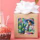 Lebhafte Farbkunst mit einer schönen mexikanischen Frau, umgeben von Kakteen.
