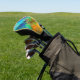 A golf head cover with a colorful abstract design. The image and text can be personalized. Original artwork by WBartworks.