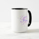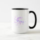 This colorful abstract neon splash coffee mug features a vibrant modern art design on a dark background.
