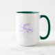 This colorful abstract neon splash coffee mug features a vibrant modern art design on a dark background.