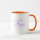 This colorful abstract neon splash coffee mug features a vibrant modern art design on a dark background.