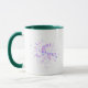 This colorful abstract neon splash coffee mug features a vibrant modern art design on a dark background.