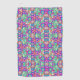 Colorful abstract pattern featuring flowers, leaves, and geometric shapes in vibrant pink, purple, green, and blue hues, creating an energetic and lively design.