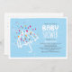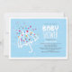 Passen Sie diese stilvolle Baby Dusche-Einladung an. Sehr schönes, modernes Design mit weißem Schirm und farbenfroher Dusche auf blauem Hintergrund. Schnelle und einfache Anpassung, ändern Sie alle Vorlageninformationen mit Ihren eigenen.