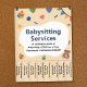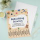 A colorful flyer with Tear Off Strips featuring building blocks, a teddy bear, stars, green apple, bunting flags, etc. It could be perfect for all activities with kids such as babysitting, nanny, child care, tutor, etc