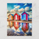 Colorful Beach Huts Ocean Reflection Coastal Postkarte