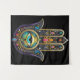 Colorful Black Gold Hamsa w/ Turquoise Third Eye Wandteppich