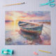 A hand-painted style image of a boat floating on calm water, with soft sunset colors in the sky. Suitable for artistic and coastal-themed crafts.
