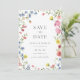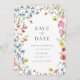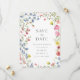 Farbenfrohe Boho Whimsical Wildblume Märchen Elegante Hochzeit Save the Date Einladung Bohemisch-Stil arrangierte romantische florale minimalistische Einladung mit bunten pastellfarbenen Wildblumen und botanischen als handgedruckte Aquarell. Bitte editieren Sie die Rückseite der Einladung mit Ihrem Foto. Der einzigartige Hintergrund der Wildblume ist prächtig für Märchengartenhochzeiten und Hochzeiten mit boho blühenden Pflanzen. Einladungen für Frühjahr, Sommer, Herbst und Winterhochzeiten.
