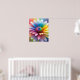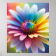 Eine lebendige Blume zeigt eine außergewöhnliche Farbpalette, wobei sich die Blätter nahtlos von einer Farbe zur anderen bewegen. Der Hintergrund ergänzt die Blüte durch eine weiche Unschärfe passender Regenbogenfarben.
