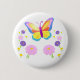 Colorful Butterfly and Flowers Button Badge