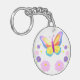 Colorful Butterfly and Flowers Round Keychain Schlüsselanhänger