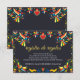 This Colorful Cinco de Mayo Fiesta Spanish Wedding Enclosure Card design showcases a vibrant Mexican folk art-inspired theme, featuring colorful birds, flowers, and a central heart motif. The bright red, yellow, blue, and green hues stand out against the deep black background, creating a festive and lively atmosphere. The symmetrical arrangement of the birds and flowers adds balance and harmony, perfect for wedding invitations or celebratory stationery.