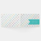 Stilvolles Hochzeitsgast-Buch in einem farbenfrohen Polka Dot-Muster auf weißem Hintergrund. Ein türkisfarbenes Band an der Vorderseite des Buches hat einen weißen Text, der für Ihren besonderen Tag personalisiert werden kann.
