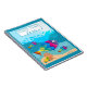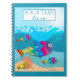 Colorful notebook featuring an underwater scene with fishes. The texts as well as the text background rectangle are optional or can be customized.