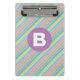 Colorful Diagonal Candy Stripes Purple Monogram Mini Klemmbrett