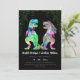 Delight your guests with this funny dinosaur-themed wedding invitation, featuring a charming T-Rex bride and groom in warm brown hues surrounded by lush green jungle foliage. Set against a sleek black background, this bold and modern design is perfect for couples who love dinosaurs and want to add a playful twist to their special day.