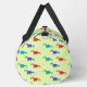 Colorful dinosaurs pattern on green duffle bag