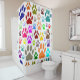 Dog paw prints in many colors and sizes to create this unique shower curtain. Cartoon Design. Gift idea for dog lovers.