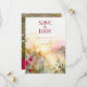 This Save the Date card stands out for its lush composition of wildflowers, enhanced with a delicate glitter effect that adds brightness and sophistication. The harmonious arrangement of floral elements creates an eye-catching visual impact, while the vibrant color palette conveys freshness, joy, and romance. Each flower is illustrated with meticulous detail, bringing authenticity and delicacy, and creating a charming and memorable design that celebrates the beauty of nature and the excitement of announcing a special event. The subtle glitter effect elevates the elegance of the composition, producing a distinctive and captivating style that immediately draws the attention of your guests.