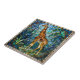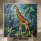 Bring the majestic beauty of the African savannah into your home with this stunning stained glass style giraffe ceramic tile. This intricate design features a towering giraffe set against a backdrop of vibrant jewel-tone blues, emerald greens, and golden accents, rendered in a classic mosaic art nouveau technique. The "lead lines" and fragmented color panels create a luminous, glowing effect that looks incredible printed on high-quality ceramic.