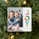 Fügen Sie Ihrem Weihnachtsbaum eine farbenfrohe Touch mit diesem fröhlichen, hellen Foto-Ornament hinzu, mit dem bunten Typografie-Lesen "JOY". Das Wort JOY ist mit einem überlappenden Gewebepapier-Look in kühnen Farbtönen grün, Limon, rosa, rot, aqua blau und goldgelb gestaltet. *Kunstwerk, das ausschließlich von Orabella Prints erstellt wurde.