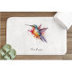Step onto vibrant artistry and unique charm with our Custom Bath Mat, featuring the captivating "Colorful Flight, Watercolor Hummingbird" design. This beautiful mat showcases a stunning watercolor hummingbird in dynamic flight, a kaleidoscope of iridescent blues, greens, oranges, and purples bursting from an artistic paint splatter background. It's a delightful way to add a unique pop of nature's beauty and artistic flair to your bathroom floor.