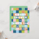 Celebrate the baby and parents to be with this modern take on the baby shower invitation. A background pattern of colorful checkerboard squares in a gender neutral combination of pink, orange, greens and blues keep this baby celebration from being stereotypical and reflects the modern parent and a laid back aesthetic.