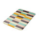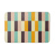A colorful, geometric pattern with vertical stripes in teal, cream, peach, dark brown, and orange arranged in rows. The design conveys a retro, vibrant feel.