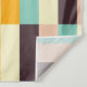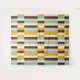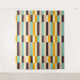 A colorful, geometric pattern with vertical stripes in teal, cream, peach, dark brown, and orange arranged in rows. The design conveys a retro, vibrant feel.